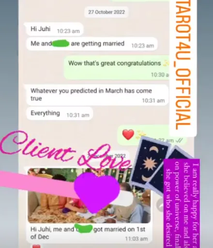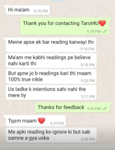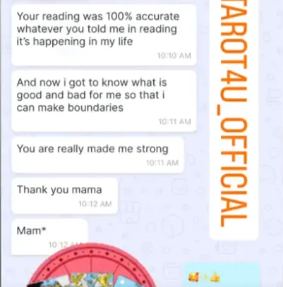 The examples shared above are just a small sample of the many success stories from my satisfied clients. The reason I shared these success stories is to show how accurate and helpful tarot predictions can be in providing clarity and guidance to navigate difficult situations.